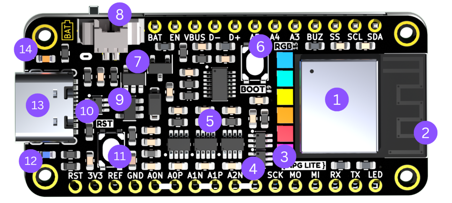 Neuro PlayGround Lite (NPG Lite) adalah papan akuisisi sinyal bio-fisiologis nirkabel multikanal dengan form-factor Adafruit feather. It dapat digunakan untuk Elektrokardiografi (ECG), Elektromiografi (EMG), Elektrookulografi (EOG), atau Elektroensefalografi (EEG). Footprint kompak dan setup tanpa masalah memastikan portabilitas, penerapan cepat dan pengalaman tanpa kekacauan, menjadikannya ideal untuk penelitian, pendidikan dan aplikasi wearable.