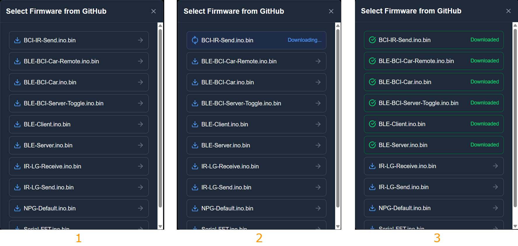 1. Daftar firmware akan muncul. Anda dapat mengunduh beberapa firmware secara simultan, tetapi hanya satu yang dapat di-flash pada satu waktu.