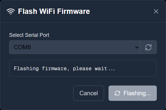 2. Klik Flash, tombol Flash untuk mulai mengunggah firmware WiFi.