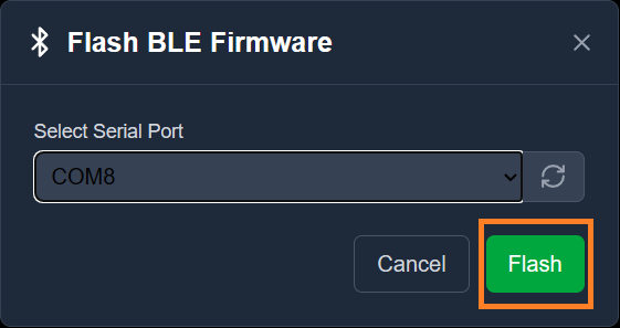1. Klik Flash, tombol Flash untuk mulai mengunggah firmware BLE.